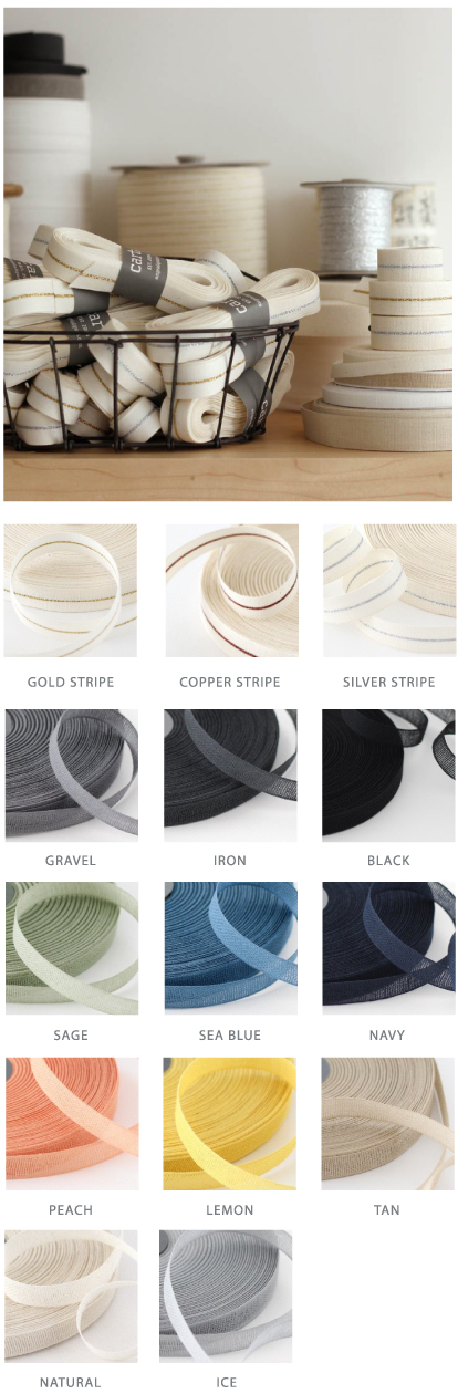 STUDIO CARTA COTTON RIBBON | Available in 5/8’’ for solids · 5/8’’ and 1/4’’ for stripes